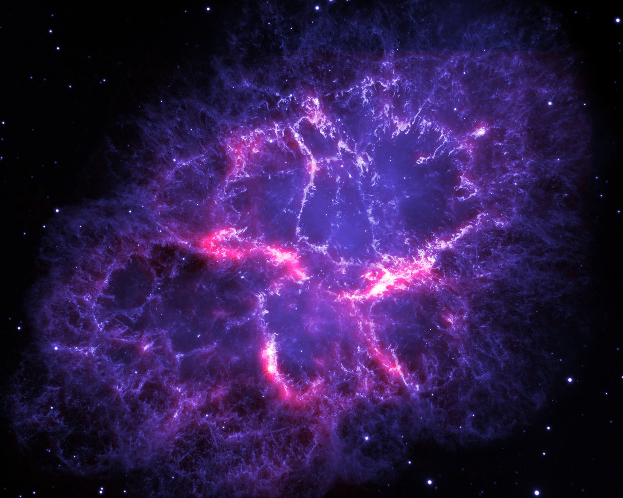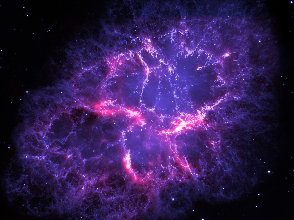 This image of the Crab Nebula is made up of two images combined, each picture was snapped by a different telescope.