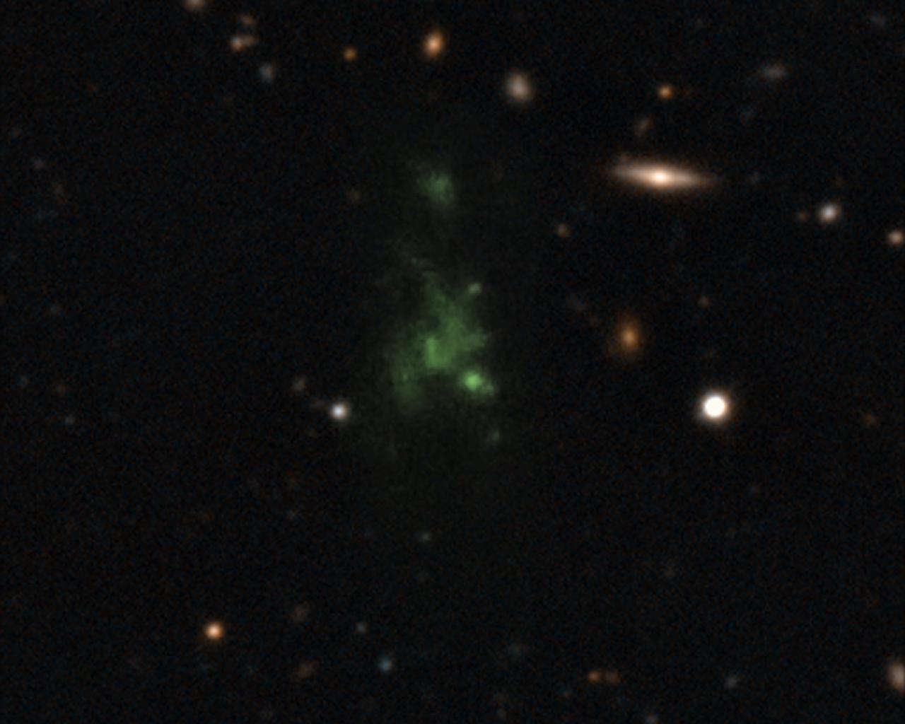 What do you think astronomers call the green thing in this photo? If you guessed “blob”, then you’re right! Well, if we’re being technical, the full name for this type of object is a “Lyman-alpha blob”.