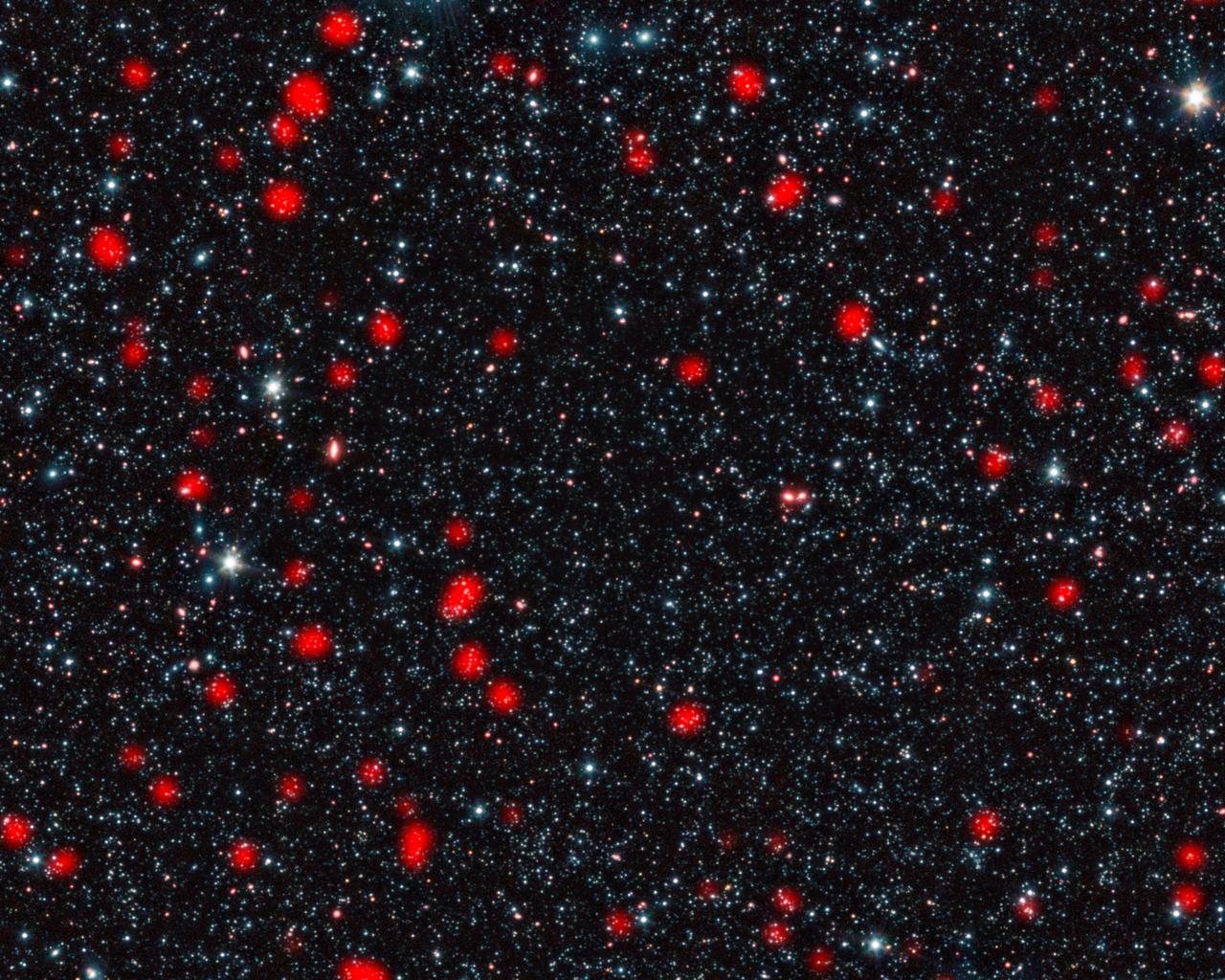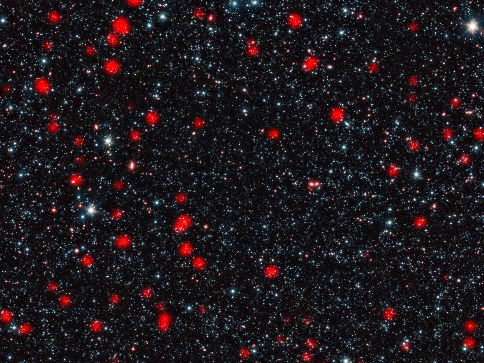 Some of these galaxies are especially interesting to astronomers and they have been highlighted in red in this new space picture. When the Universe was very young, the galaxies that have been highlighted were in a star-making frenzy, which is called a starburst. These starbursts didn’t last long and this is what astronomers are interested in: What put a stop to this rapid star production?