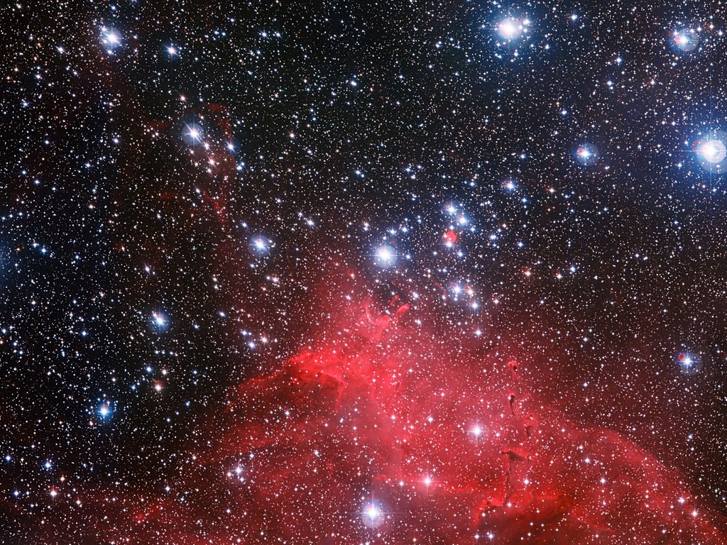 This fantastic red cloud of gas and dust and the young stars scattered around it are all part of an open star cluster called NGC 3572.