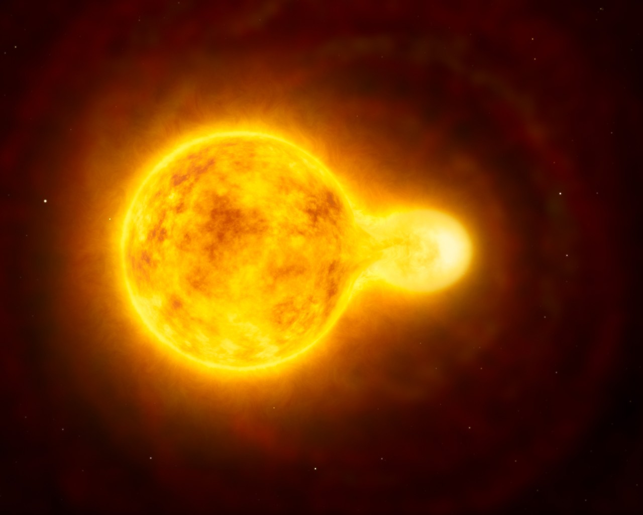 This picture is an artist’s illustration of one of the most rare and awesome stars in the Universe – a yellow hyper-giant. You can also see a smaller companion star on the right.