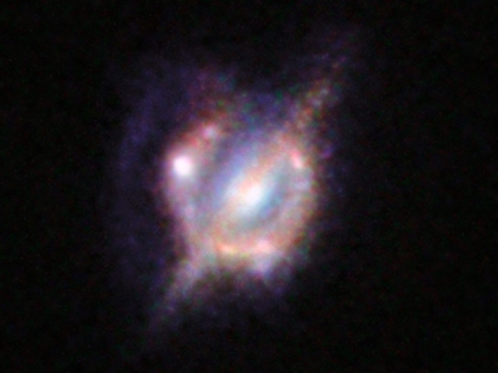 Thanks to a handy natural phenomenon creating galaxy-sized magnifying glass, our telescopes had improved vision for this photograph. The blurry picture shows the remains of a tremendous collision that happened a long time ago between two galaxies. As these galaxies continue to crash and merge together before your eyes, the shock waves from the impact are sparking a frenzy of new star birth!