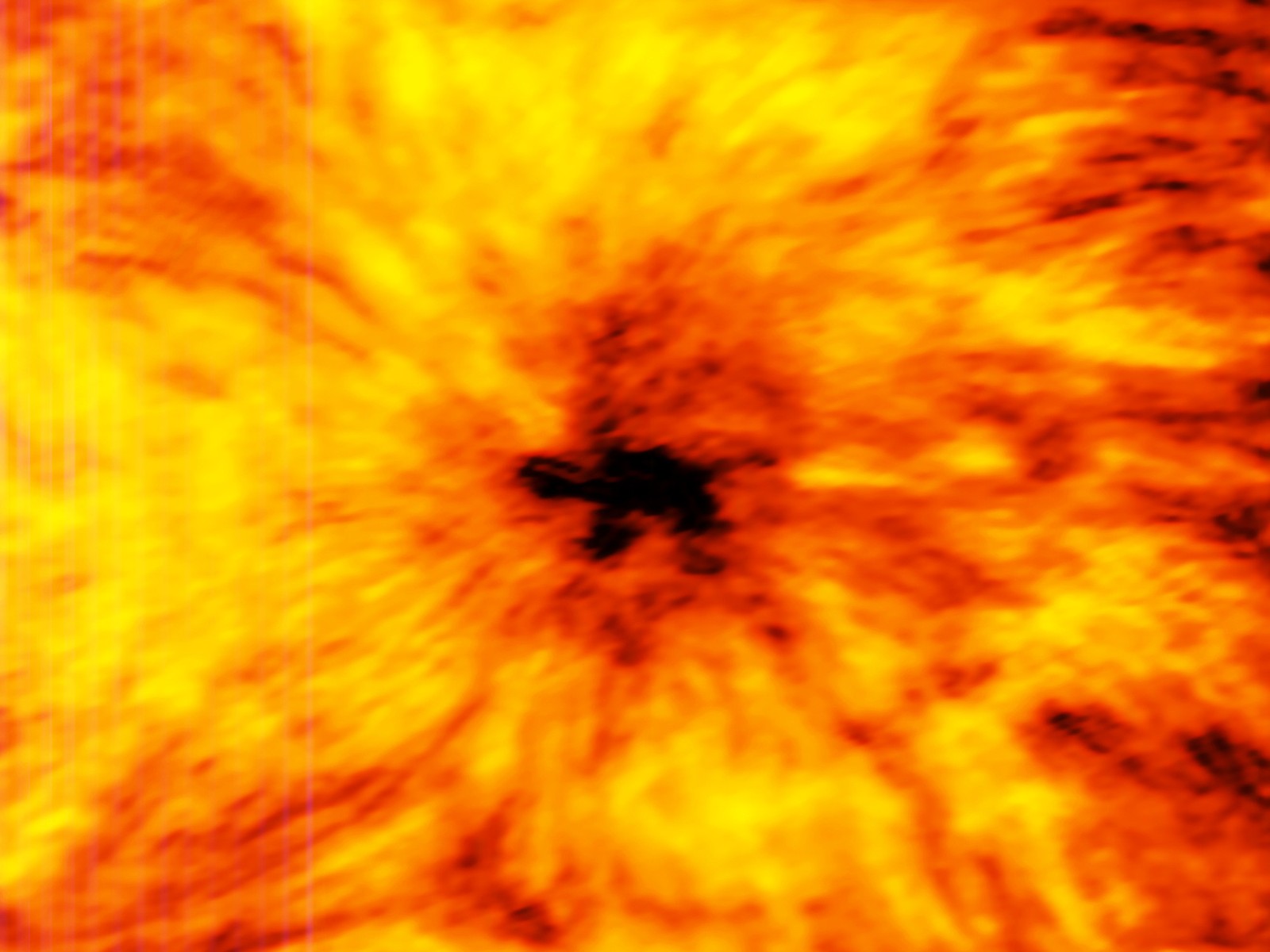 The picture above is one of the coolest (pun intended) new observations from ALMA, showing a large sunspot. Sunspots are slightly cooler places on the Sun, that appear as dark patches. The lower temperatures are caused by strong magnetic fields.