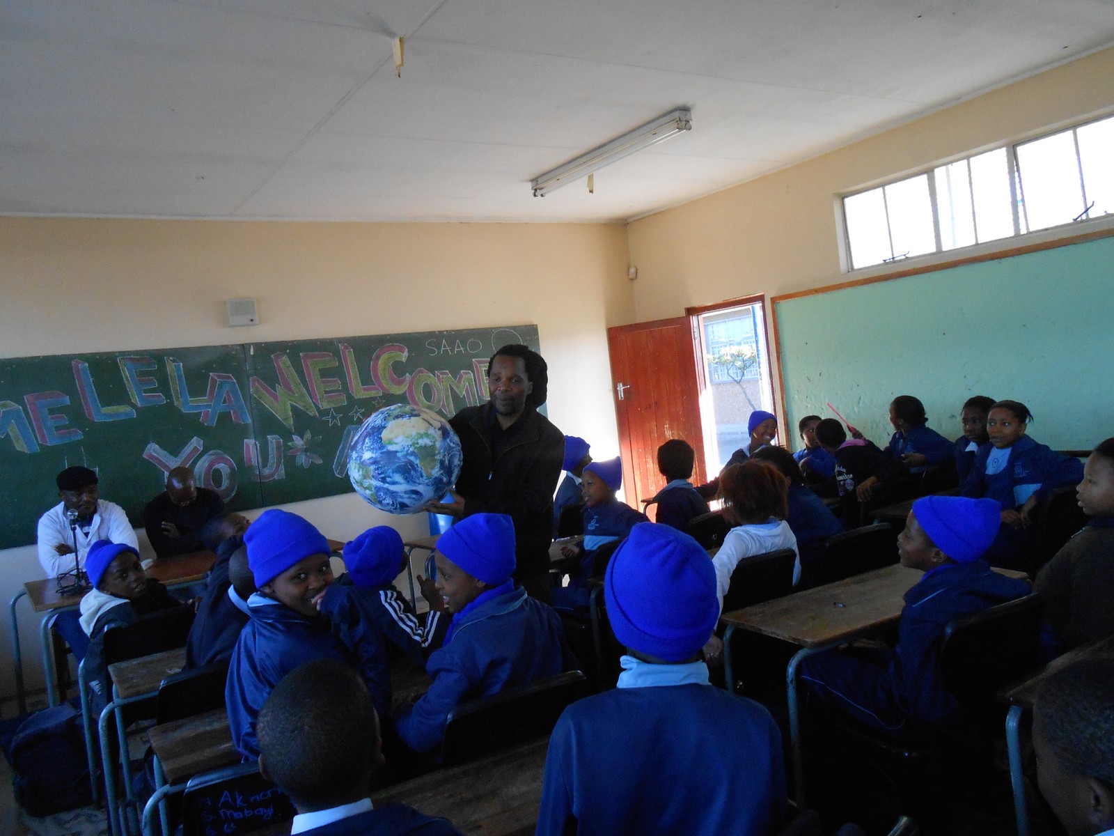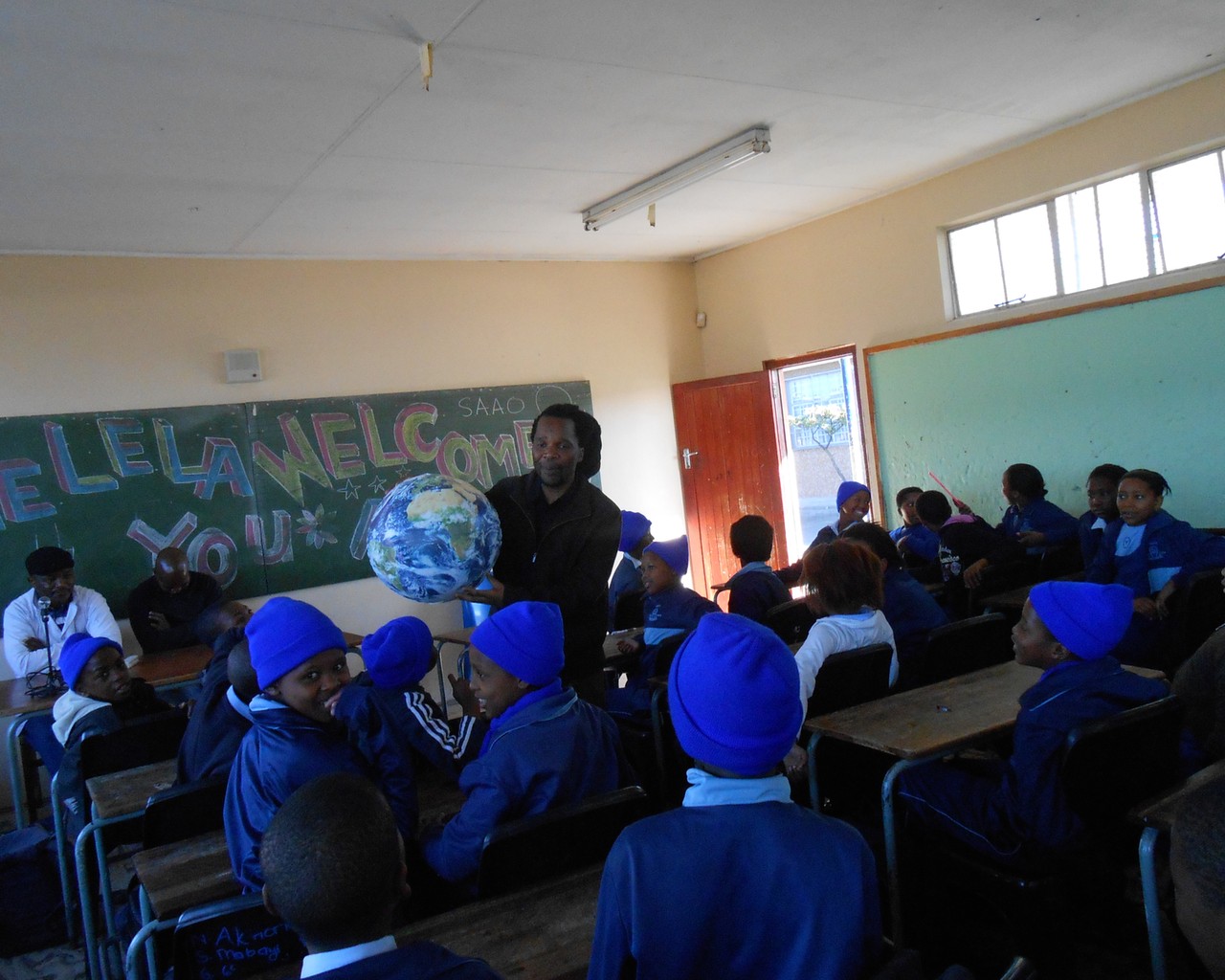 Sivuyile using the Earth Ball to explain astronomical concepts during his National Science Talk