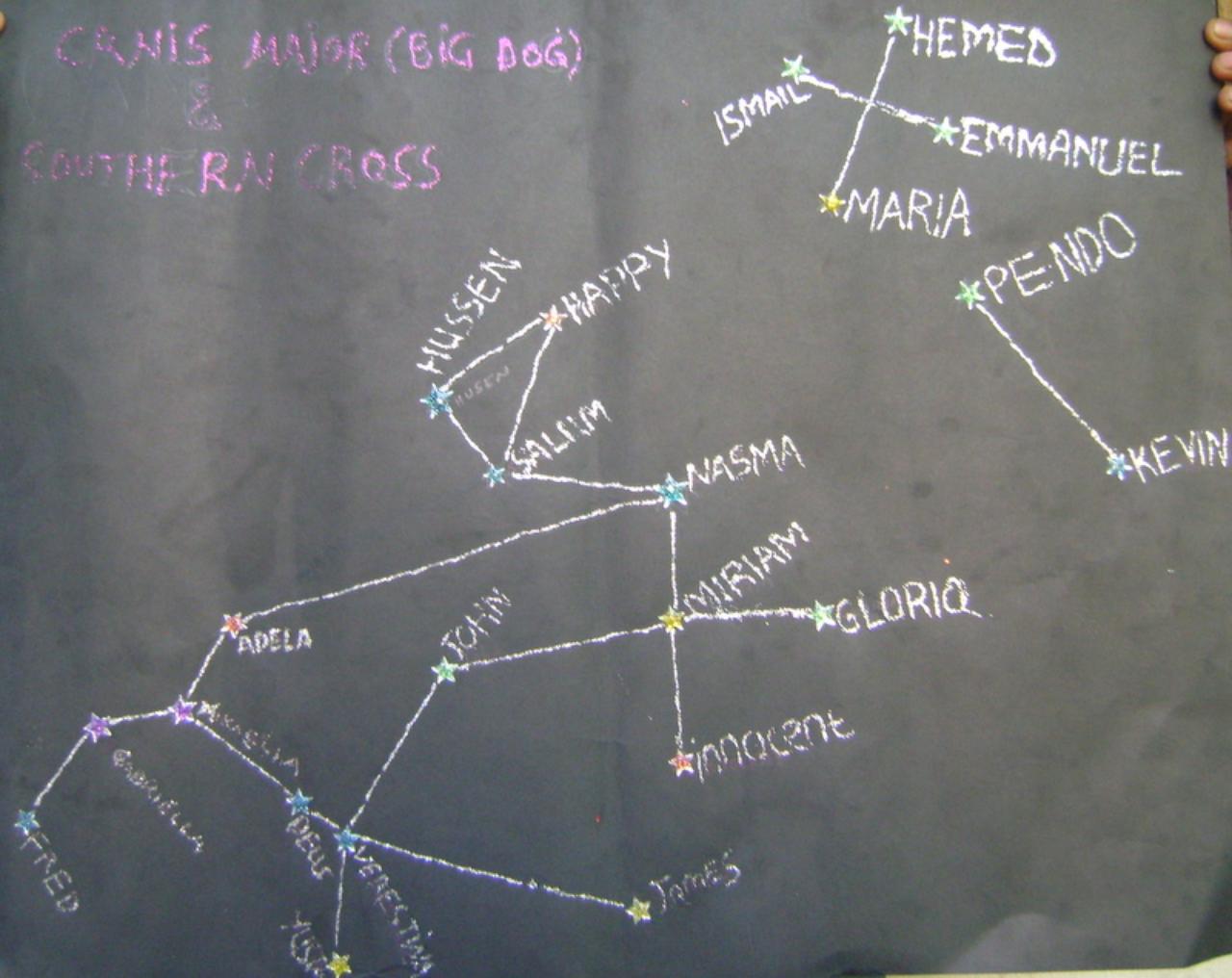 On the 6th June 2010 UNAWE-Tanzania finalized their project with the kids at SOS Children Centre in Dar es Salaam. ‘My Star’ event involved each child of the village. Each child took a star sticker and stuck it on a black paper, which represented a night dark sky and formed a known constellation. Each child who placed a star on the paper wrote his/her name beside that star, which marks participation in the program and a memory to let these kids become more connected to the sky above so that when they find and look onto their respective stars in the sky above, from wherever they are in on the globe.