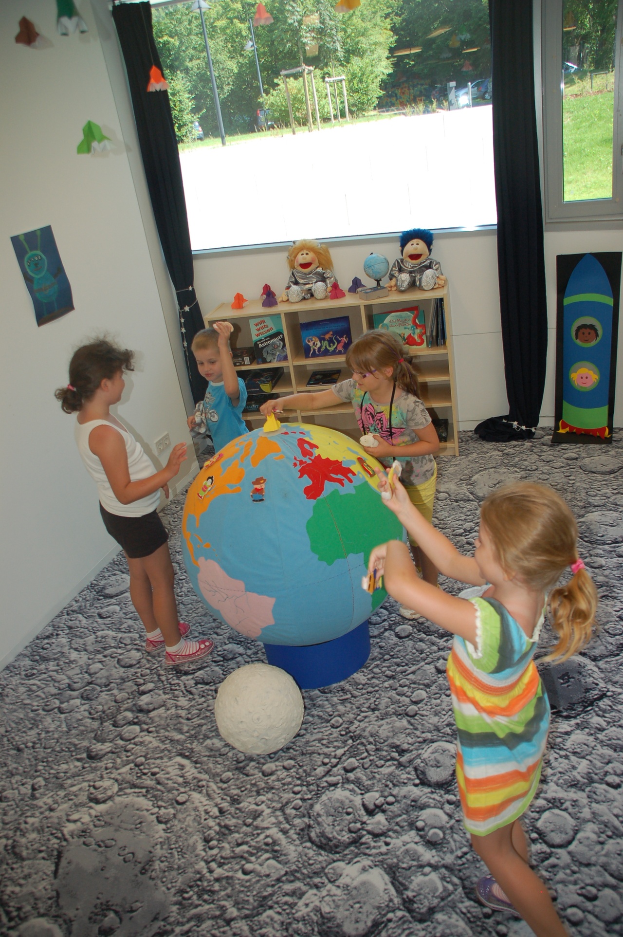 The room is equipped with various educational materials, including a carpet that is decorated with Moon craters that is often used for storytelling. “It can be very effective to introduce children to astronomy concepts in an informal learning environment,” says Natalie Fischer, National Project Manager for EU-UNAWE Germany.
