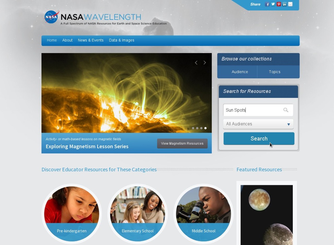 Can't find any resources on the UNAWE website to suit your needs? Why not head over to NASA Wavelength, a new website packed full of educational resources for teaching and learning about Earth and Space Science. The site is packed with resources for educators dealing with students of all ages, from nursery to higher education. All the resources have been peer-reviewed by both educators and scientists to ensure that the content is scientifically accurate and suitable for its purpose and target audience. The website is updated regularly, keeping the resources up-to-date with the ever-evolving field of science. There is a search tool that makes it quick and easy to locate resources; you can search by keyword to find resources on specific topics or even search for specific age groups.