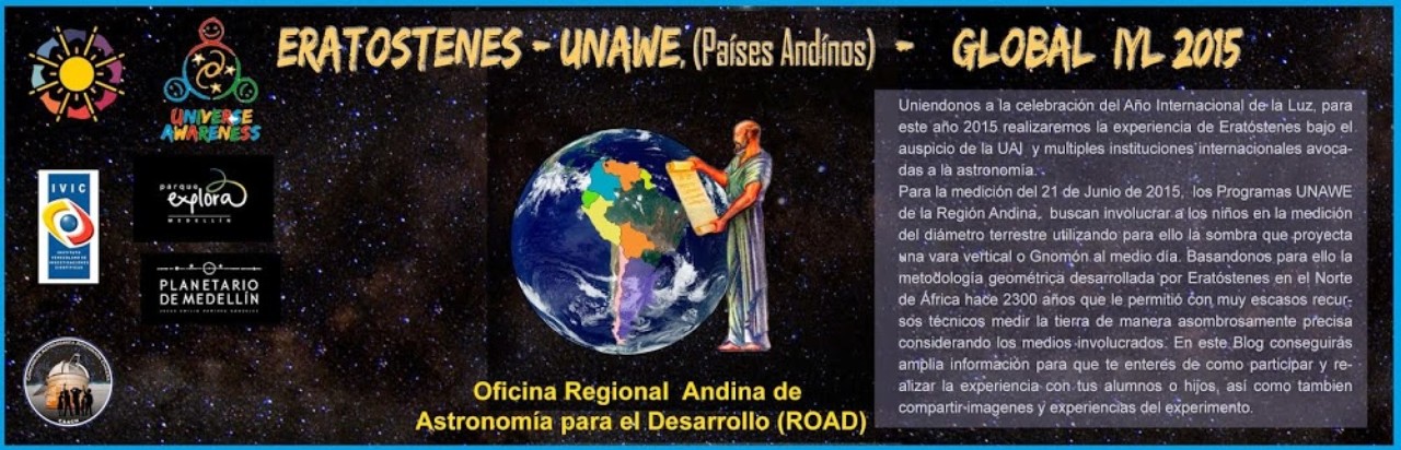 The Eratosthenes project by the UNAWE Andean Countries will join the celebration of the International Year of the Light 2015 by taking part in the Eratosthenes Global IYL2015 project. The project will coordinate measurements taken on 21 June 2015 throughout the Andean region.