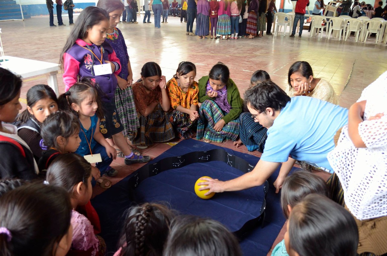 The children performed Universe in a Box activities such as Moon and Earth, Sun and Solar System and Constellations. Additionally, the children observed sunspots with a small telescope. The activities were led by physics students from the Universidad de San Carlos de Guatemala, who are members of the Astronomy Club Aq'ab'al from the same university.