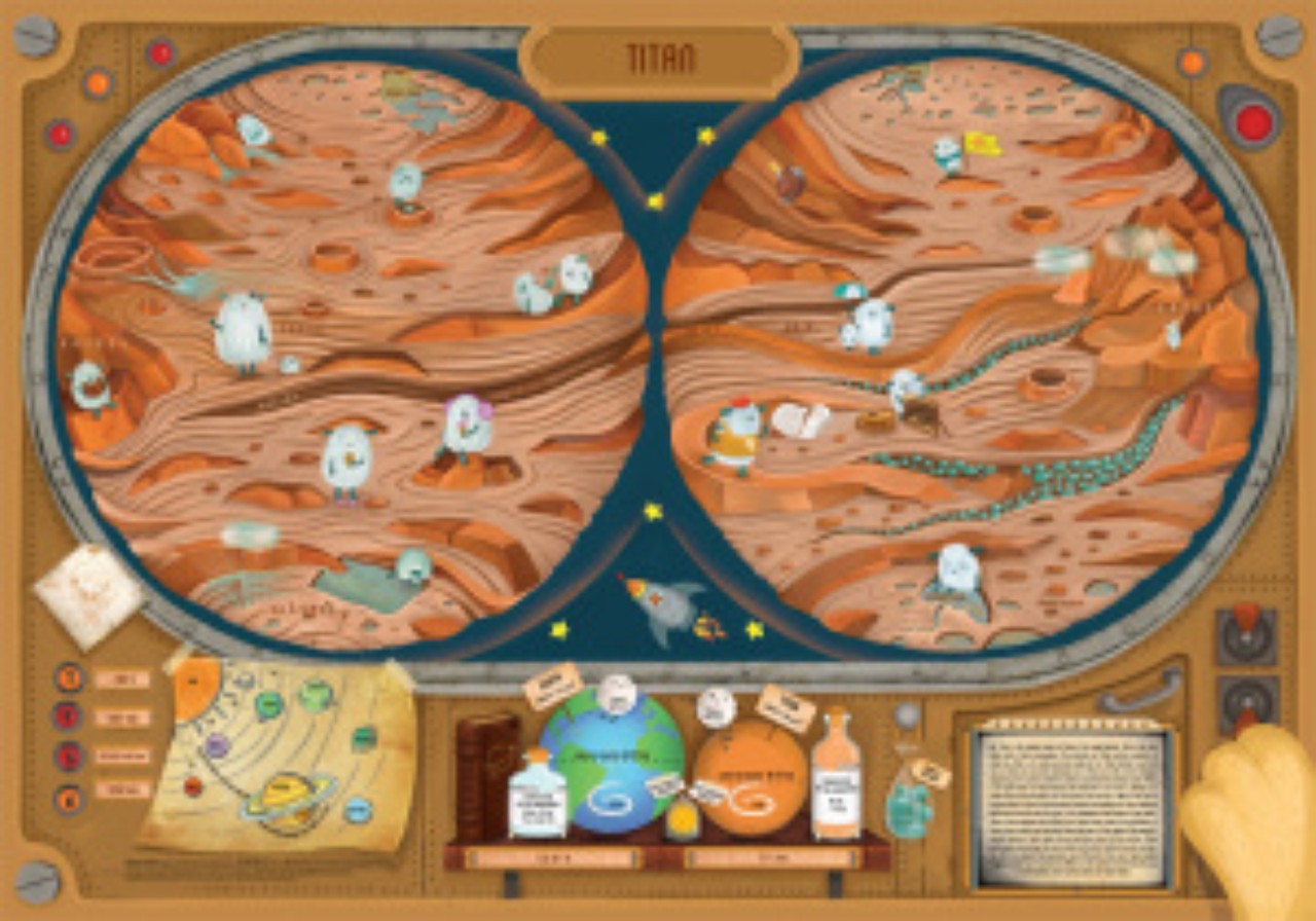 The maps are hand-drawn and awesome for kids to explore the different worlds, which even have aliens on them. But the authors note that: “The aliens depicted on the maps are creatures of imagination. The only known living things In the Solar System can be found on the Earth. Life and traces of life are sought by space probes on Mars, Europa and Titan, with no success so far. Life, as diverse as ours, is likely to be found only on planets in other solar systems in the future, with a surface temperature similar to that on the Earth. “